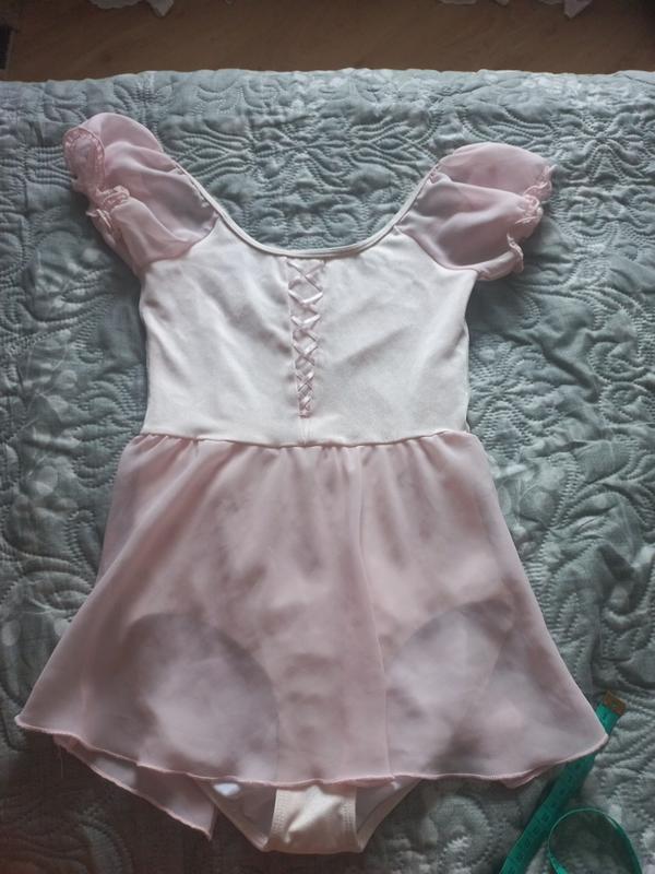 Нежно розовое трико для занятий балетом, на девочку возрастом 6-7 лет, в очень хорошем состоянии, присущая легкая катышка, незаметная. Длина 59, пог 28, поб 28.