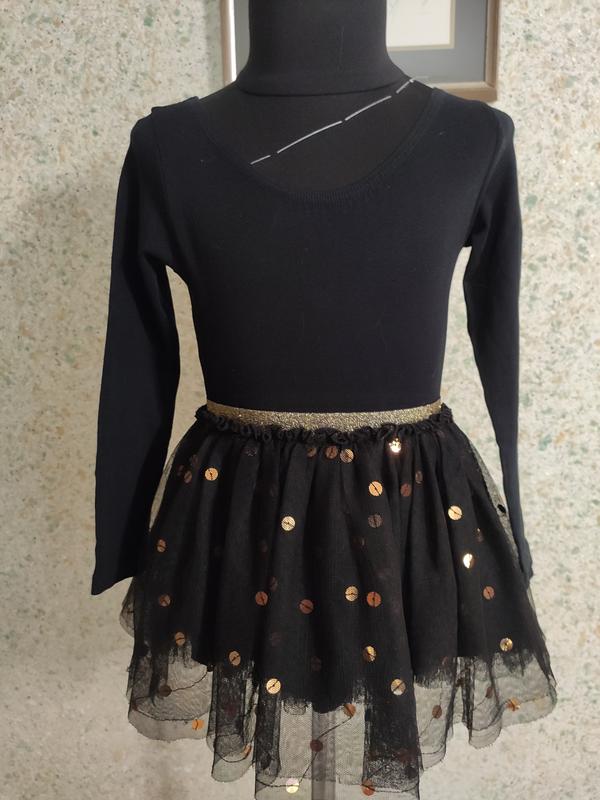 Р.30-32, ~на 6 лет, купальник+юбка, на купальнике р.32: длина от плеча до низа-44 см; полу/замер под грудью-25 см, бедер-19 см; длина рукава с плечом-41 см( плечо-2,5 см). Ткань-х/б + эластан,. юбка:на бирке на рост 92 см, но по замерам на больший размер: полу/замер по талии(по резинке)19см( тянется до 25 см); длина 24 см. Прохание замеры уточнять обязательно( особенно юбку), отправку также.