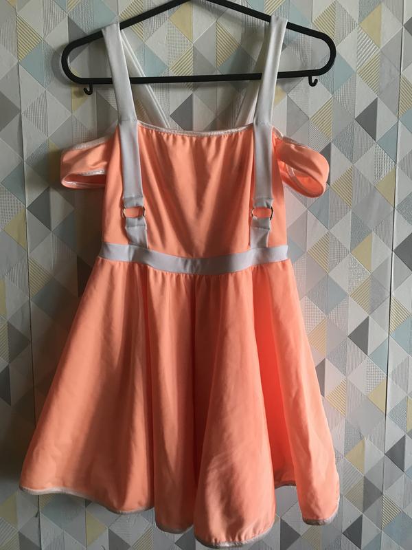 Танцювальна сукня Яскравого кольору Вдягнута пару разів На бреткльках Довжина спереду 53 см Довжина по спинці 48 см Ширина в поясі 30 см На який вік не знаю на жаль