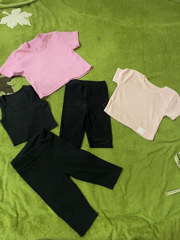 Комплект черный в рубчик Две футболки укорочение Шорты Цена за все
