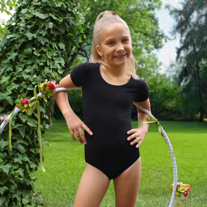 Купальник дитячий для гімнастики чи танців чорний боді на короткий рукав, без спідниці , в...