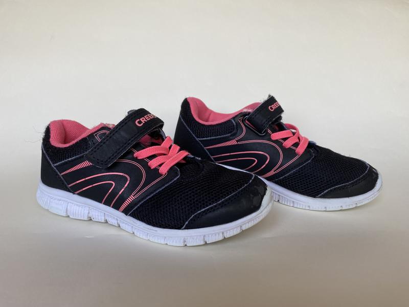 Лёгкие кроссовки фирмы Creeks с сеточкой. Размер-30, стелька-19 см. Б/у в хорошем состоянии. Немного стёрты носки, но в глаза не бросается. Фото 5-непонятные пятна (на правой ноге с внутренней стороны)