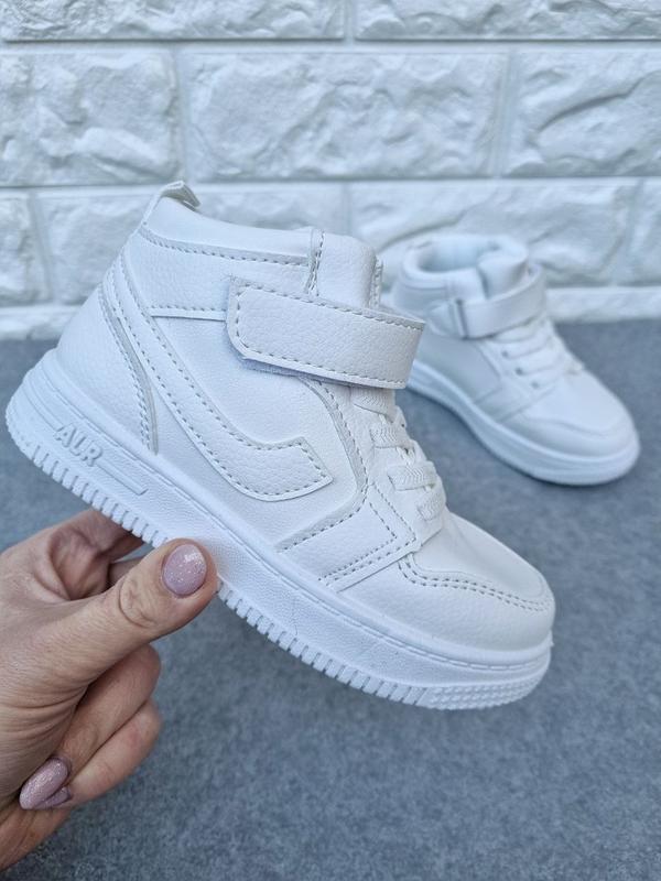 К.848 🧒👧Крутые белые хайтопы Clibee, верх эко-кожа, в середине текстиль,стелька анатомическая перфорированная, регулируются липучкой и шнурками резинками, унисекс. 28р стелька 16,8см 32р стелька 19см