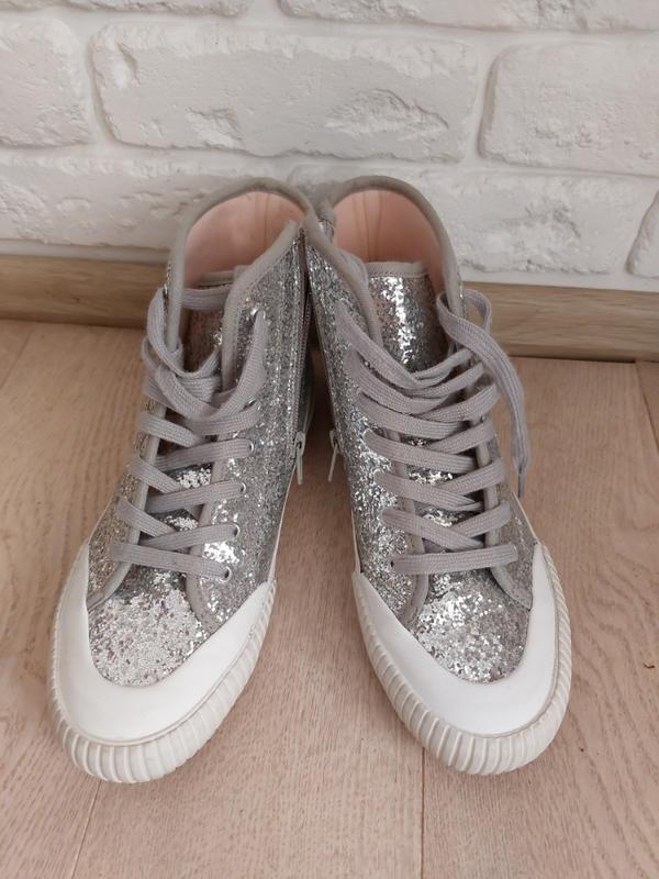 Дуже стильні кеди в паєтках, всередині текстиль. Стан ідеальний, взуті пару раз, дуже швидко переросли. на довжину ніжки 23,5 см