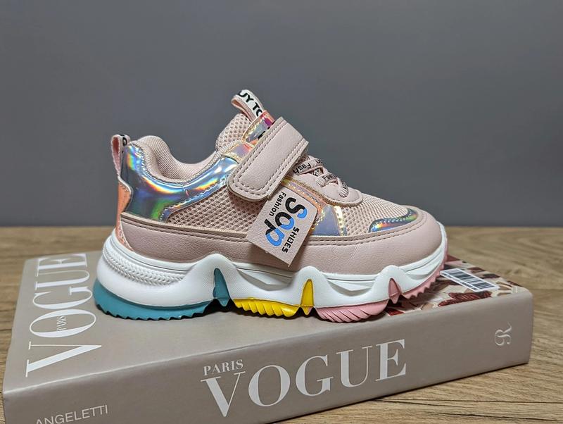 Стильні кросівки для дівчаток з яскравою підошвою. Верх еко шкіра та текстиль -сітка, не наскрізна. Устілка шкіряна з супінатором. Фіксація на липучку. Дуже легесенькі та зручні. Розміри: 26р-16см 27р-16,9см 28р-17,5см-2шт 29р-18,3см 30р-19см ✅✅ Ціна Тс ============== 31р-19,5см-2шт 32р-20,3см 33р-21см-2шт 34р-21,7см-2шт 35р-22,2см 36р-23см ✅✅ Ціна Тс