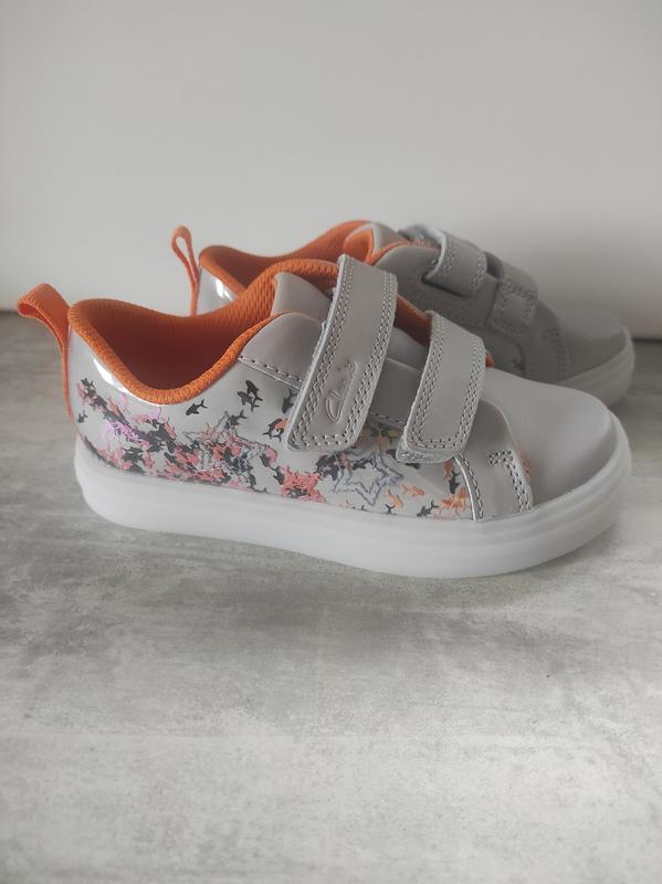 Эти кроссовки Clarks подходят для ежедневных прогулок. Неотъемлемая вещь в гардеробе каждого ребенка. Кроссовки - это лучшая обувь, готовая к любому Дышащая и гибкая подкладка Прочная и удобная подошва для комфорта в течение всего дня Липучка для легкой, регулируемой посадки Съемная внутренняя стелька для универсальной посадки Очень красивые кроссовочки!!! В наличии 27 р-р, стелька 16,5 см