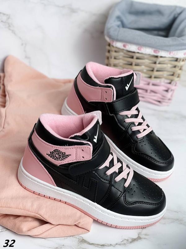 Код 32 Кроссовки Материал эко-кожа Цвет черный + розовый На шнуровке + липучка Высота от пятки 8 см Высота подошвы спереди 1,5 см Высота подошвы сзади 2,5 см Размер по сетке: 32 - 19,5 см 35 - 21,5 см
