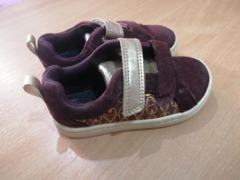 Кроссовки на девочку, на липучке. Верх замша. Стелька 14см полностью. На стопу ребёнка 13см.