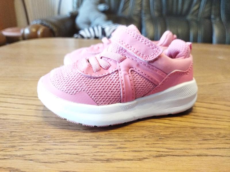 Кроссовки на девочку, 22 размер, длина стельки 13,5 см, подойдут на ножку 12,5 -13 см. Выполнены из текстиля, очень мягкие и легкие.
