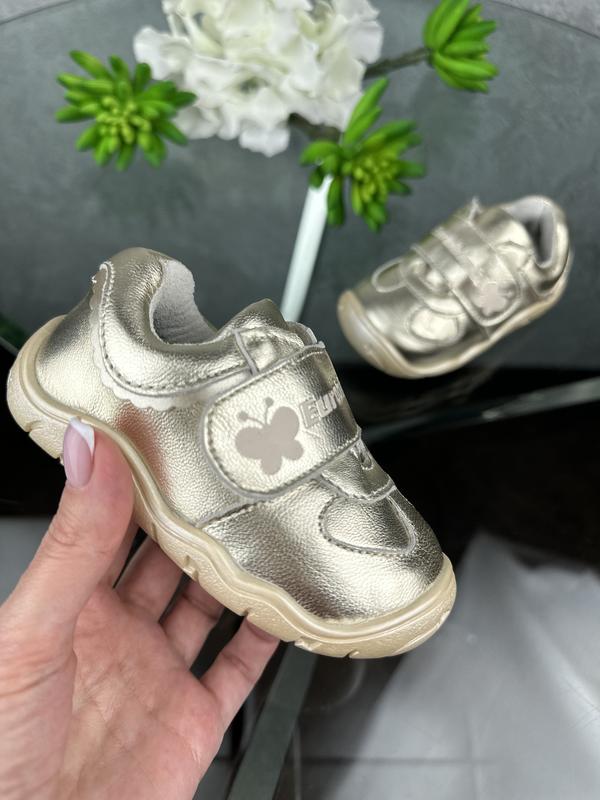 Кроссовки для девочки верх эко кожа стелька -анатомическая застежка -липучка цвет золотой имеют противоударный носок замеры стельки р-ри в наявності: 21-13.0см 21-13.0см 22-13.7см 22-13.7см 23-14.5см 23-14.5см Рекомендуемый запас +0.5см к стопе.