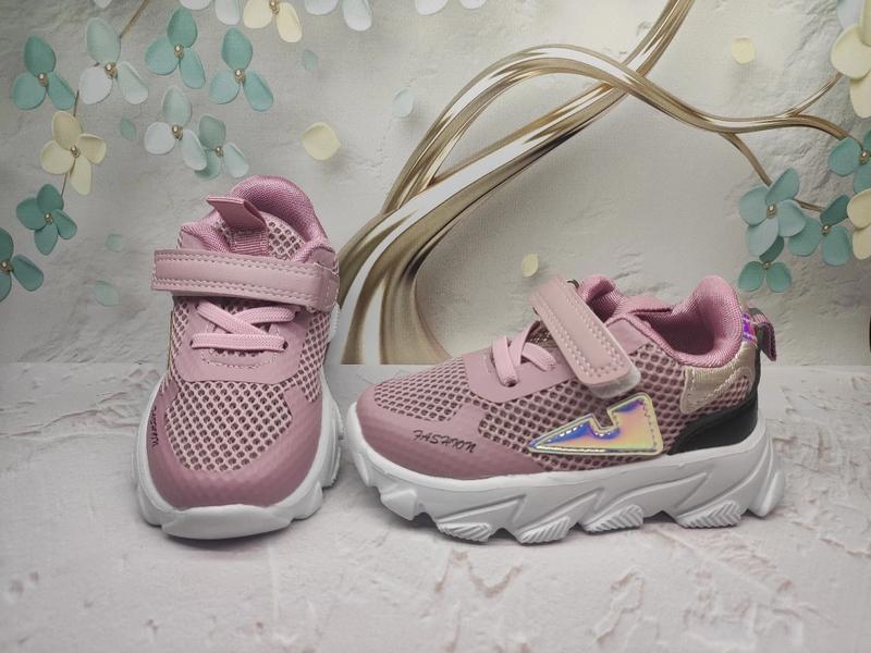 Легкие кроссовки для девочек. Верх сквозная сетка, прорезиненный носочек. Стелька кожа с супенатором. Замеры: 23-15 23-15 2