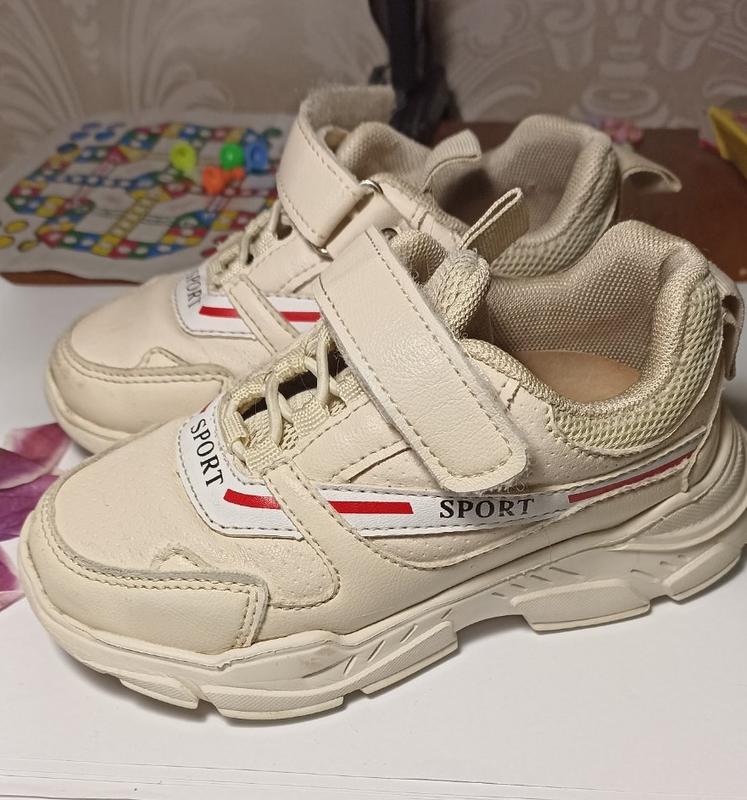 Кроссовки детские унисекс бежевые на липучке 25р-15 см стелька