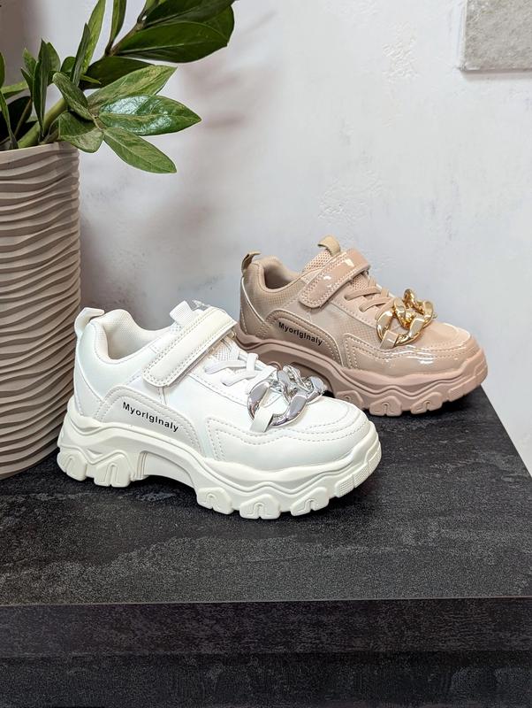 Стильні кросівки для дівчаток. Верх якісна еко шкіра. Устілка шкіряна з супінатором. Фіксація на липучку, шнурки -резинки. Дуже легесенькі, немов пір'їнки. Виглядають мега стильно. Розміри: 33р-20,5см 34р-21см 35р-21,8см-2шт 36р-22,5см-2шт 37р-23,2см 38р-23,7см ✅✅