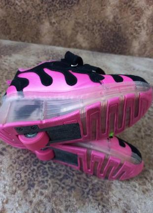 кроссовки в которых можно не только ходить, но и кататься, колеса фиксируются кнопкой, можно также нажимом на кнопку колеса спрятать, ребенок каталась в помещенные на улицу неточно кроссовки в очень красивом состоянии.