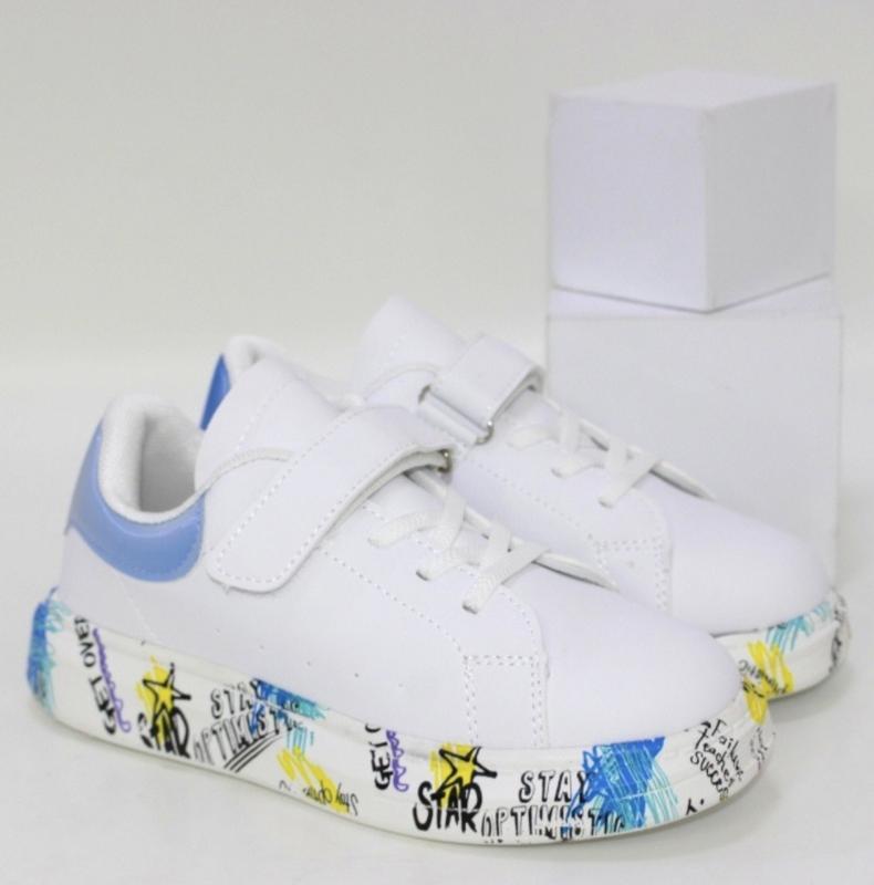 Модные подростковые кроссовки Код: 113555 (F019) Бренд: YIYI Материал верха искусственная кожа Материал стельки текстиль Цвета в наличии белый Сезонность осень, весна Страна производитель Китай Замеры по стельке 32-18.5см 34-20.0см 35-21.0см 36-21.5см