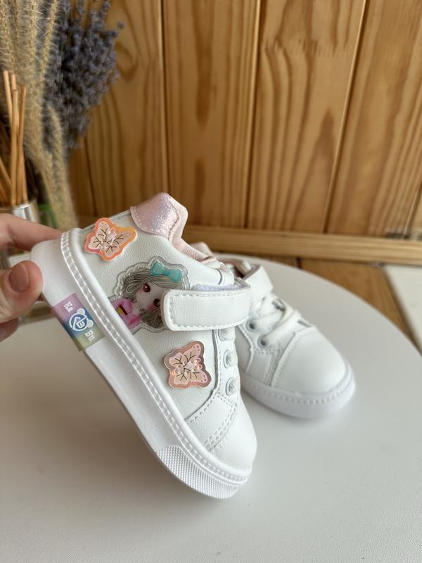 Кроссовки для девочки, отличного качества, прикую лучшими чем на фото Верх-качественная эко кожа Внутри подкладка также из эко кожи. Стелька перфорированная с супинатором. Подошва гибкая! Размеры: 22-14.0 см. 23-14.5 см. 24-15.0 см. 25-15.5 см. 26-16.0 см.