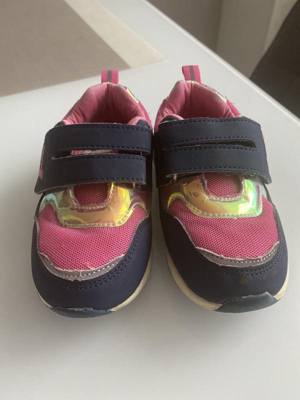 Продам кроссовки для девочки, размер 25, с хорошей полнотой, легко обуваются, широкая липучка не изношена. Состояние хорошее, два нюанса : немного пожелтела подошва и на одном на носочке есть потертость ( на темно синем цвете в глаза не бросается)