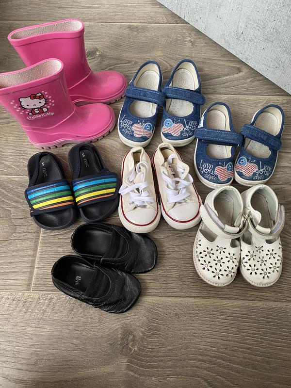 Обувь б/у. Розовые резиночки: стелька по подошве 16, а в середине не могу хорошо измерить где-то 14,8-15см. Цена 100грн. Джинсовые Waldi: 24 размер 16см, 26 размер 17,3см. Стан идеален. Цена 180грн.(за пар) Кеды белые 22р., стелька 13см. Цена 200грн. (Орригинал) Босоножки белые: стелька 14,5. Цена 150 грн. Черные чешки 14,5 Цена 50грн. Босоніжки Next (оригінал) Стелька 14,5 Цена 120грн. Размер 22, 23, 24, 26. Вся обувь в очень хорошем состоянии, не рваная. Больше фотодам в пп.