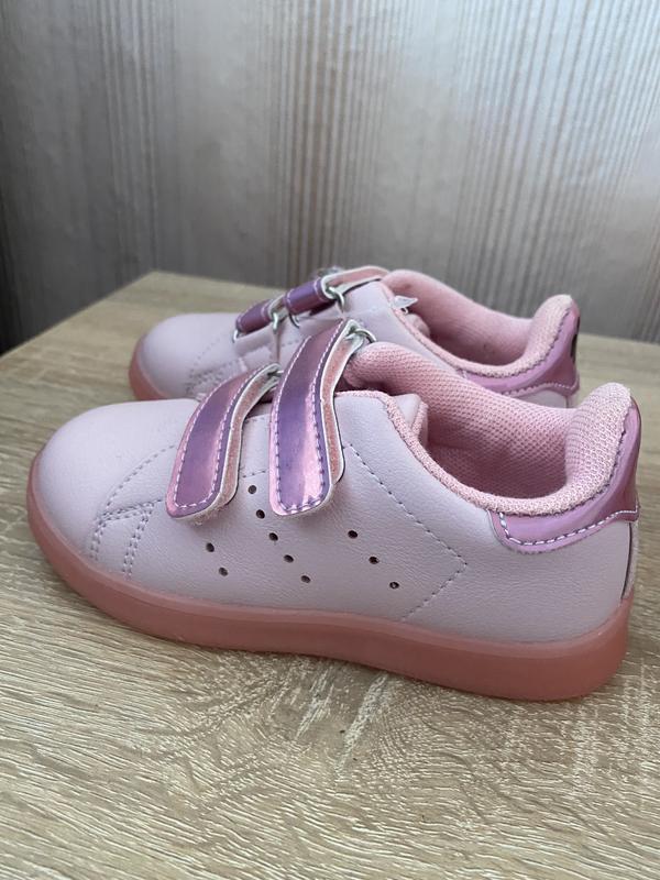 Стильні та легенькі кросівки, ніжно рожевого кольору, фіксується ніжка липучками, шкіряна устілка. р.25- 15,5 см р.30- 19 см.