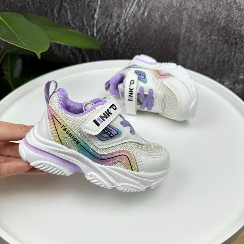 🦋Кросівки Link білі з фіолетовим . Устілка- шкіра, супінатор . Верх- еко шкіра, текстиль . Підошва- піна. Застібка- липучка. 📐Заміри: 23 - 13,5 24 - 14,5 25 - 15 26 - 15,5 27 - 16,4 28 - 17 💰Ціна 435 грн