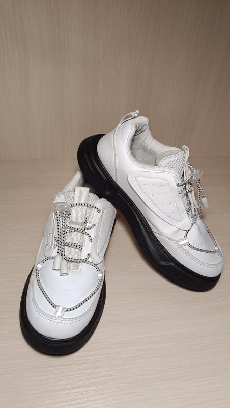 Белые кроссовки на девочку из качественного заменителя в очень красивом состоянии. Длина стельки 20 см. Присутствующие следы пользователя ава (на фото видно).