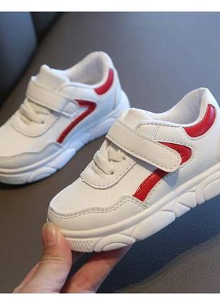 Заміри: 15 - устілка 11,5 см 19 - устілка 13,2 см 21 - устілка 13,6 см 22 - устілка 14 см 25 - устілка 15,2 см 28 - устілка 17,2 см Зручна та легка модель для повсякденного носіння. Матеріал: PU-шкіра Підошва: м'яка гума Застібка: липучки + самозатяжні шнурки
