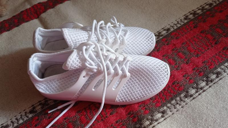 Очень удобные летние кроссовки, тоненькие, дышащие, красиво сосуществуют с платьем и тоненькими юбками, отлично поручятся в машине. Состояние прекрасное, выстиранное, см фото. Размер - 36, стелька - 22,5- 23 см.