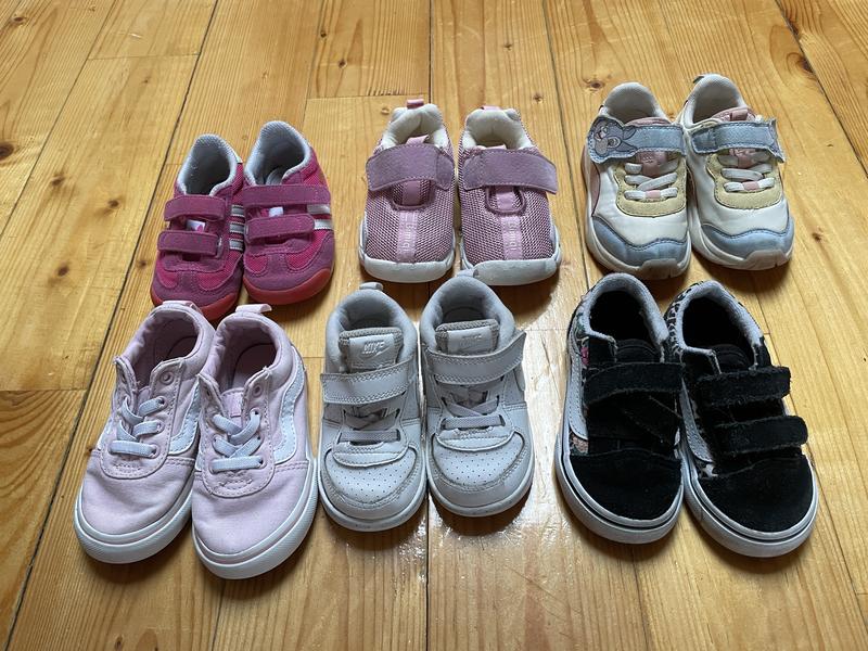 Кроссовки розовые Bimigi - стельки 12.5 Кроссовки H&M- 13 см Кеды Vans (розовые)- стелька 12 см. Кеды Vans (черные с цветами)- стелька 12,5 Белые Nike - стелька 12 см Розовые adidas (малинового цвета) стелька 12 см. У всех пар обуви состояние очень хорошее,цена за все 6 пар-700 грн (можливий торг)