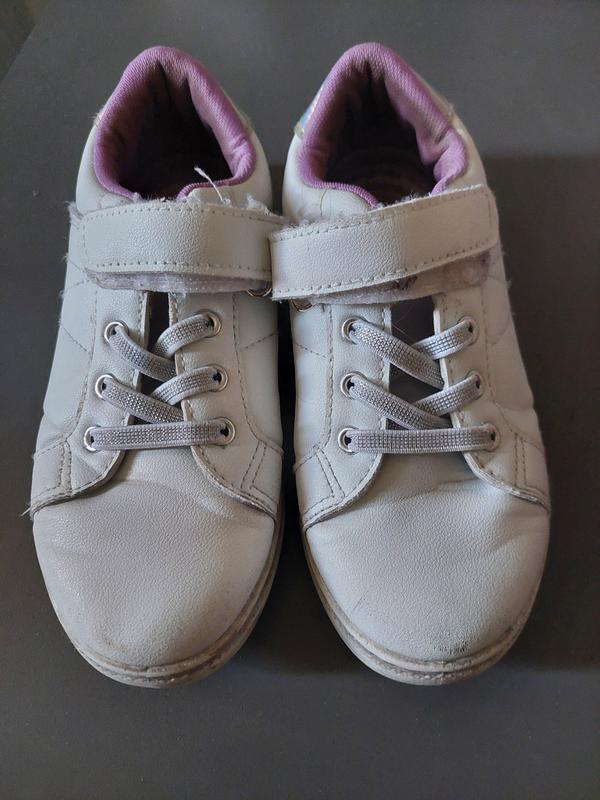 кеды белые на девочку 31 размер, 19,6 см. без дефектов. потерялись столько, в остальном в хорошем состоянии, чистка