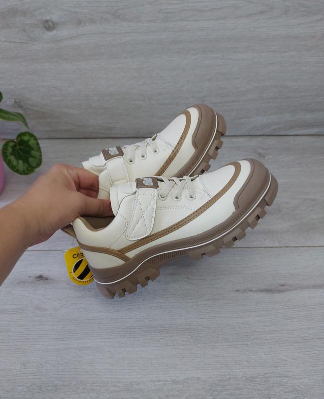 Размер: 33 - 21,5см Рекомендуемый запас 0,5см, если ножка пухленка, можно 1см. Невероятная моделька от фирмы Clibee для стильных девочек, - верх эко кожа, - стелька кожаная с супинатором, - фиксация шнурками-резинками и липучкой, - прорезиновый носок, - легкие и удобные, хорошее качество. Открытка новой или укр по почте. Оплата полная, частичная, безопасная от шкафа.