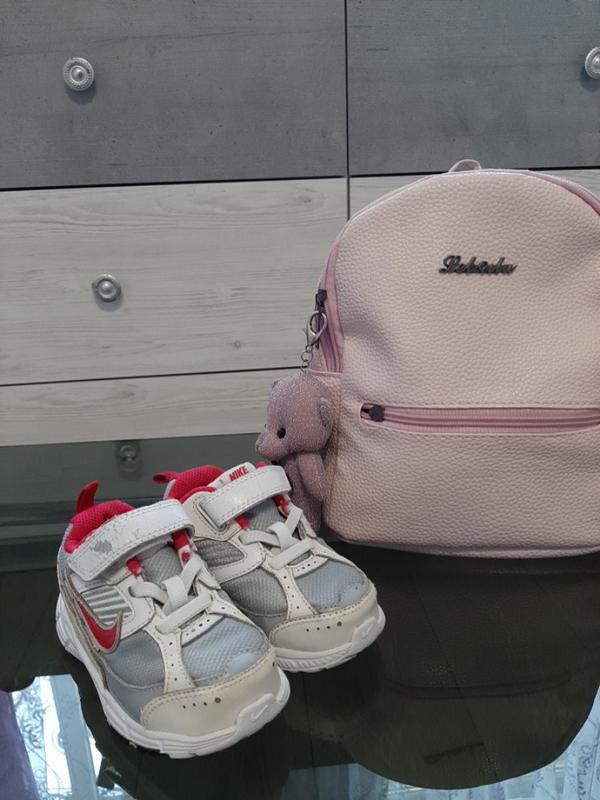 Белые кроссовки Puma с серыми вставками, внутри розовые на липучка с небольшим дефектом.