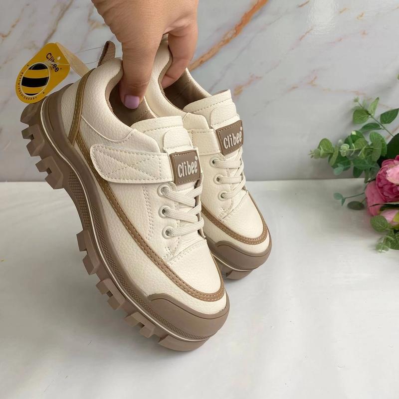 Стильная моделька для девочек ТМ Clibbe Хорошее качество Верх качественная экокожа Застежка липучкой,шнуровка -резиночки Стелька кожаная,есть супинатор Прорезиновый носок замеры внутри 32 размер 21 см 33 размер 21.5 см нет 34 размер 22.2 см нет 35 размер 23 см 36 размер 23.8 см нет 37 размер 24.3 см