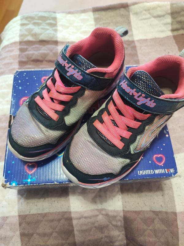 Кроссовки для девочки известной фирмы Skechers в красивом состоянии. Легкие, очень удобные. Липучки работают. Светится только один кроссовок.