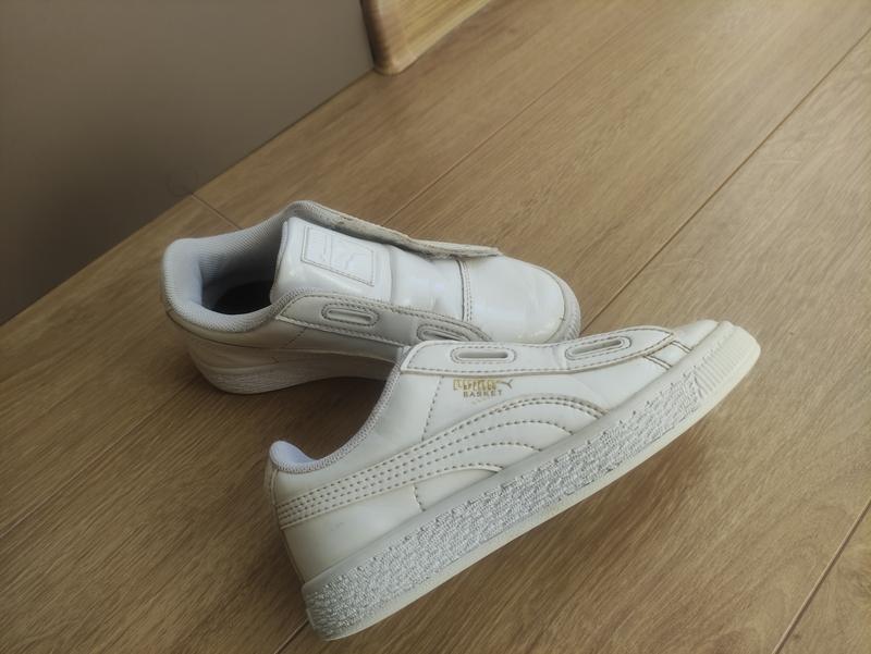 Білі кросівки від Puma, розмір вказано 29, довжина по устілці 18,6 см. Замість шнурків були звичайні ніжно-рожеві атласні стрічки (я їх попрала- і не можу знайти). Можна купити в будь-якому магазині. Виглядають дуже стильно- як до спортивного стилю (джинси, лосіни), так і з спідничкою. Відповім на усі запитання