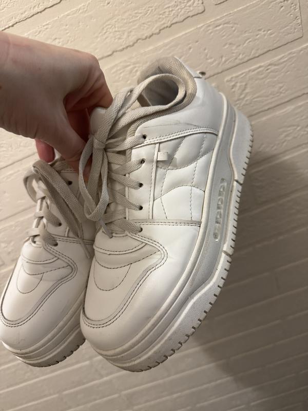 Белые кроссовки на высокой подошве. Немного одна имеет трение на носке. 37 размер