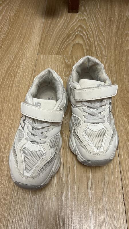 Кроссовки детские белого цвета, в красивом состоянии, размер 33, стелька 21-21,1 см. Легко стирать в стиральной машине.
