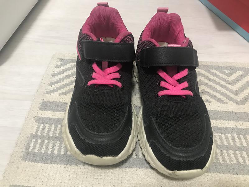 Летние кроссовки на девочку. Купили в школу для занятий с Физ. Культура. Дочка относила сезон. Липучка, материал ткань + сетка. П’ята плотна. Легкие и очень удобные. Не клеились, не шились. Длина стельки 22см.
