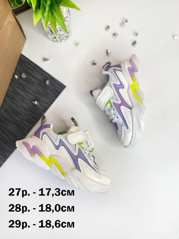 Эти кроссовочки просто бомба, невероятный дизайн и яркое сочетание цветов, не оставят без внимания вашего ребенка. Фиксируются с помощью липучки, шнурок - резинка. Стелька текстильная анатомическая. Невероятно легкие. 670 грн 27р. - 17,3см 28р. - 18,0см 29р. - 18,6см Измерение сделано по стельке лично мной, погрешность 1-2мм допустима.