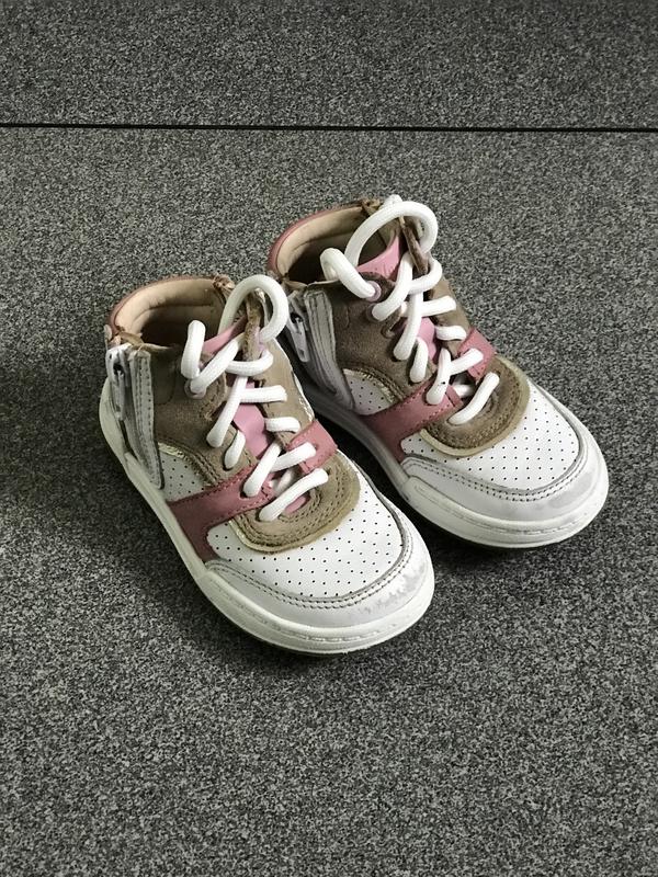 Трішки збиті носочки(не дуже помітно)решта стан відмінний. Шкіряні,з боків застібки,зручно надівати. Устілька 14 см