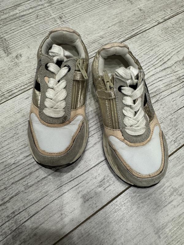 Кроссовки из натуральной кожи сверху и внутри. Удобно что есть замочек, шнурки можно не развязывать. Размер 27. Стелька 17.5 см.