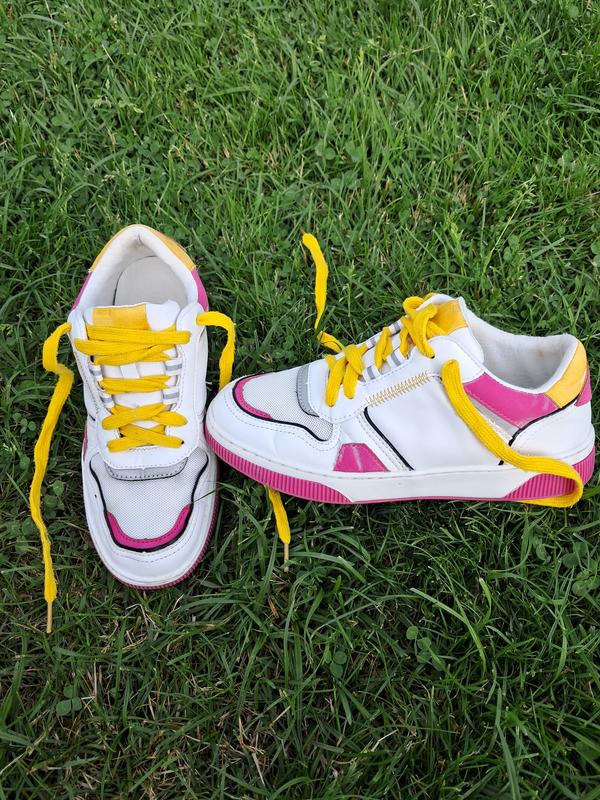Кроссовки яркие, подростковые. Было в пользовании 1 сезон. Стан хороший. Имеют незначительные следы использования. На фото все видно. Размер 37 Цена 200 грн