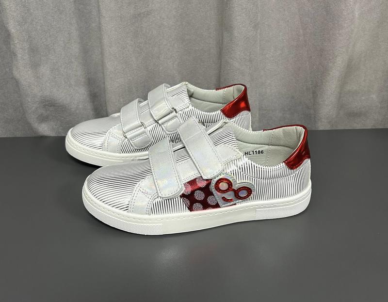 Стильные кроссовки на двух липучках. Верх экокожа, можно на дощик. Очень хорошее качество, не парят ножку. Размеры: 31-19,5; 32-20,4; 33-21; 34-21,9; 35-22,5, 36-23 см, возможно отклонение +-2 мм, стелька кожаная с супинатором. Размеры узнайте.
