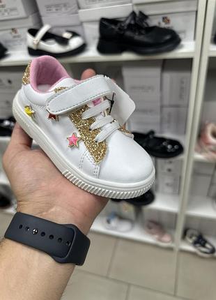 Класні кросівки для дівчинки. Яскраві із золотистими вставляками