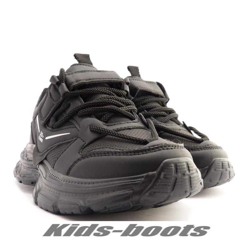 Кроссовки выполнены из искусственной кожи и текстиля. Основной цвет верха- черный. Материал подкладки - текстиль черного цвета. Стелька - анатомическая, кожаная белого цвета с супинатором. Имеют чрезвычайно легкую, гибкую и упругою подошву. Застежка – липучка и шнурки, предназначенные для детской ноги любимой полноты и высоты подъема стопы. Размеры; обувь / стельки, - 32/21cm; 33/21,5cm; 34/22cm; 35/22,8cm; 36/23,5cm; 37/24сm.