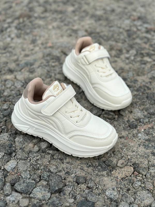 Колір ніжний молочний Верх якісна екошкіра Устілка шкіра з супінатором Фіксація липучка, шнурівка -резинка Легенькі і комфортні ! Розмір 31-36
