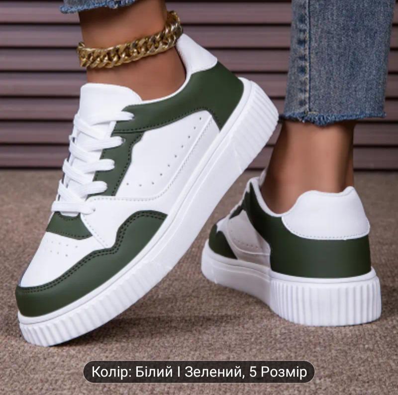 Крок до стилю! 👟 Эти белые с зеленым кроссовки - идеальное сочетание комфорта и трендового дизайна. Массивная подошва добавляет не только роста, но и уверенности в каждом шаге, а стильные золотые детали подчеркнут твой образ. Особенности: * Цвет: белый с зеленым * Материал: экокожа * Подошва: удобная * Стиль: кэжуал, спортивный, трендовый Стелька до/после загиба. Ориентируйтесь на меньшую цифру *36 размер* 22,5/23,3 см