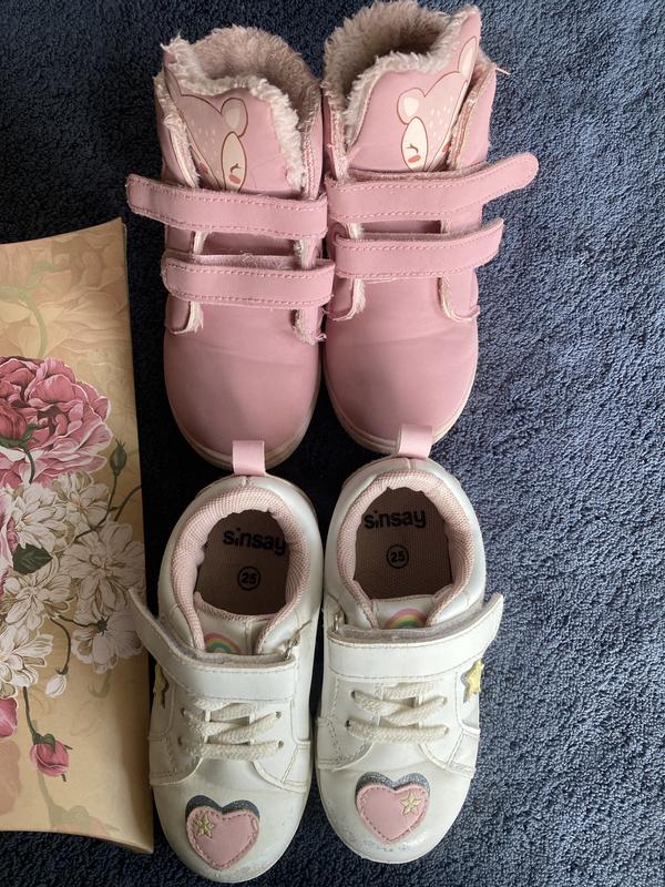 Дві пари взуття для дівчинки За 250 грн Устілка -15 см На ніжку 14,5 На кросів очках є потертості на носочках Черевички без дефектів Взуття чистесеньке , можна відразу взувати !