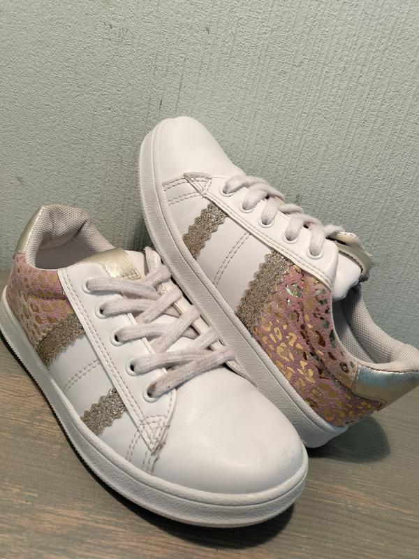 В очень красивом состоянии белые кроссовки на девочку 30р. Длина стельки 19,5см. Есть незначительная, едва заметная царапина на последнем фото.