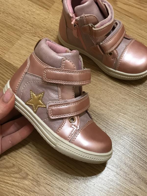 Стильні черевички для дівчинки в кольорі рожевий перламутр. Всередині без утеплювача. Мають шкіряну устілку з супінатором. Тип застібки -замок з боку+ можна регулювати висоту підйому і фіксувати за рахунок липучок. 24(2)-15см 22-14