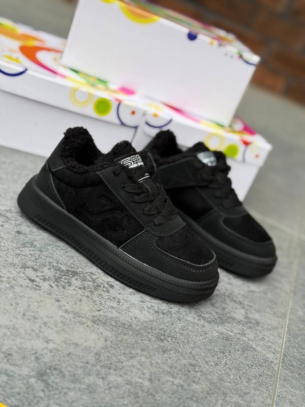 Кроссовки 126, р.31,32,33,34, эко-кожа+замша, черный